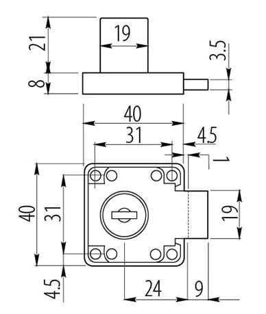 Zamek meblowy kwadratowy to bardzo dobry stosunek jakości wykonania do ceny, zamki zapakowane są w estetyczne pudełko, powierzchnia korpusu jest pokryta warstwą powłoki galwanicznej.Stosowany w różnego rodzaju meblach ,szafach,szufladach oraz barkach .