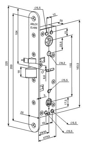ABLOY EL480 jest zamkiem elektrycznym z ustawialnym trybem pracy (otwarty bez prądu lub zamknięty bez prądu) oraz z dzielonym trzpieniem klamki. Klamka zewnętrzna jest sterowana elektrycznie, natomiast klamka wewnętrzna otwiera zawsze.