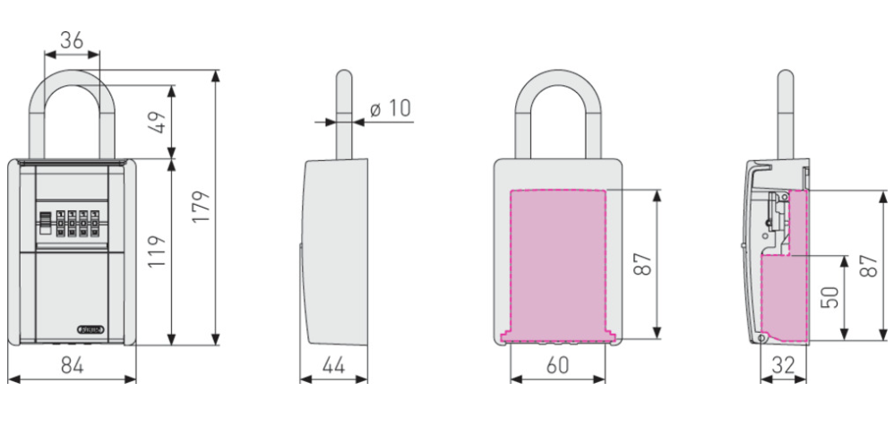 Obudowa wykonana jest z masywnego metalu i pokrywa z odlewu cynku chronią w razie potrzeby kilka kluczy i kart kredytowych przed niepowołanym dostępem. Plastikowa klapka chroni dodatkowo kółeczka szyfru przed warunkami atmosferycznymi.