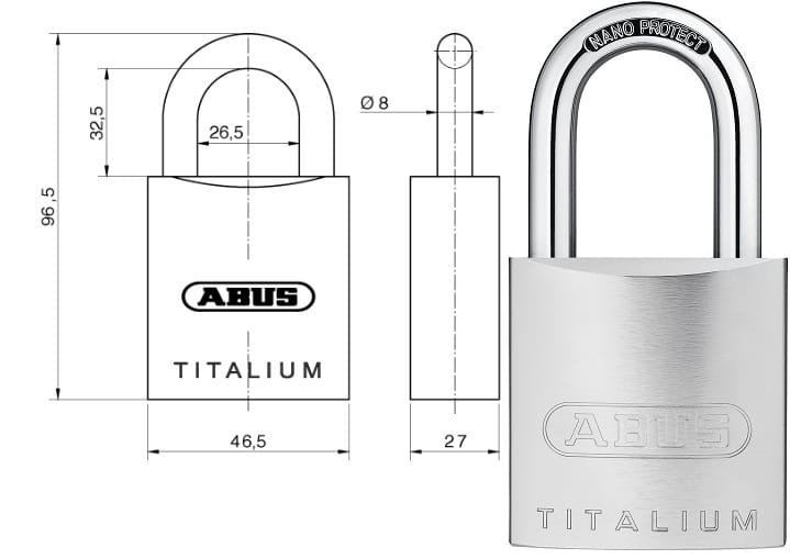 Dzięki tej wytrzymałej kłódce można zabezpieczać szafki rozdzielcze, drzwi, bramy, schowki lub szopy przed próbami włamania. Solidny korpus kłódki wykonany jest ze specjalnego aluminium TITALIUM™, a hartowany stalowy pałąk posiada powłokę NANO PROTECT™. Kłódka dostarczany jest bez wkładki zamykającej. Dostępne w handlu półwkładki Europrofil można zainstalować w kłódce za pomocą zwykłego klucza imbusowego, aby zintegrować ją z istniejącymi systemami zamknięć.