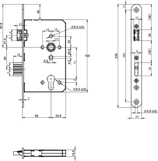 - Rozstaw wkładka- czoło zamka: 65 mm