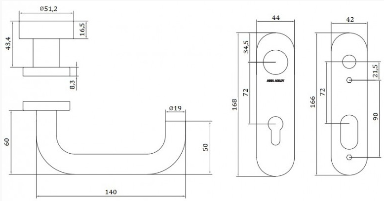 Gałko-Klamka drzwiowa na długim szyldzie z otworem na wkładkę bębenkową. Przeznaczona do drzwi przeciwpożarowych. Wykonana jest ze stali i posiada trzpień obrotowy – kwadrat 8 mm – stosowany w okuciach dopuszczonych do montowania w stolarce przeciwpożarowej. Została zaprojektowana dla zapewnienia prawidłowej pracy skrzydła drzwiowego w wypadku pożaru.