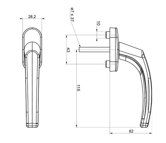 CAM Klamka okienna plastikowa – trzpień 37 mm