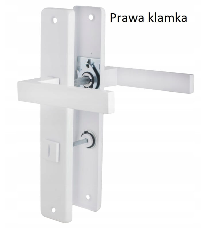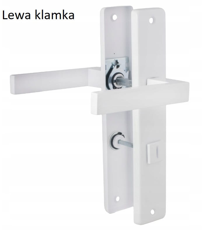 Klamka na długim szyldzie kolor białym matowy WC+ czarne wkręty montażowe