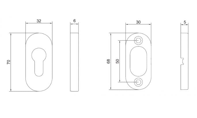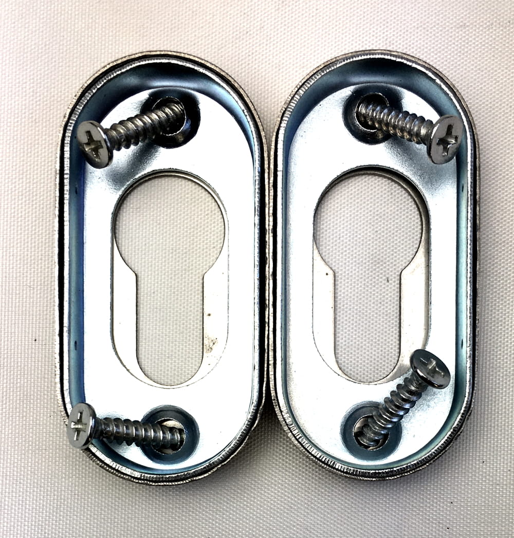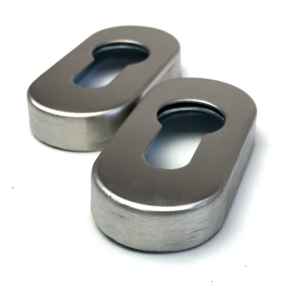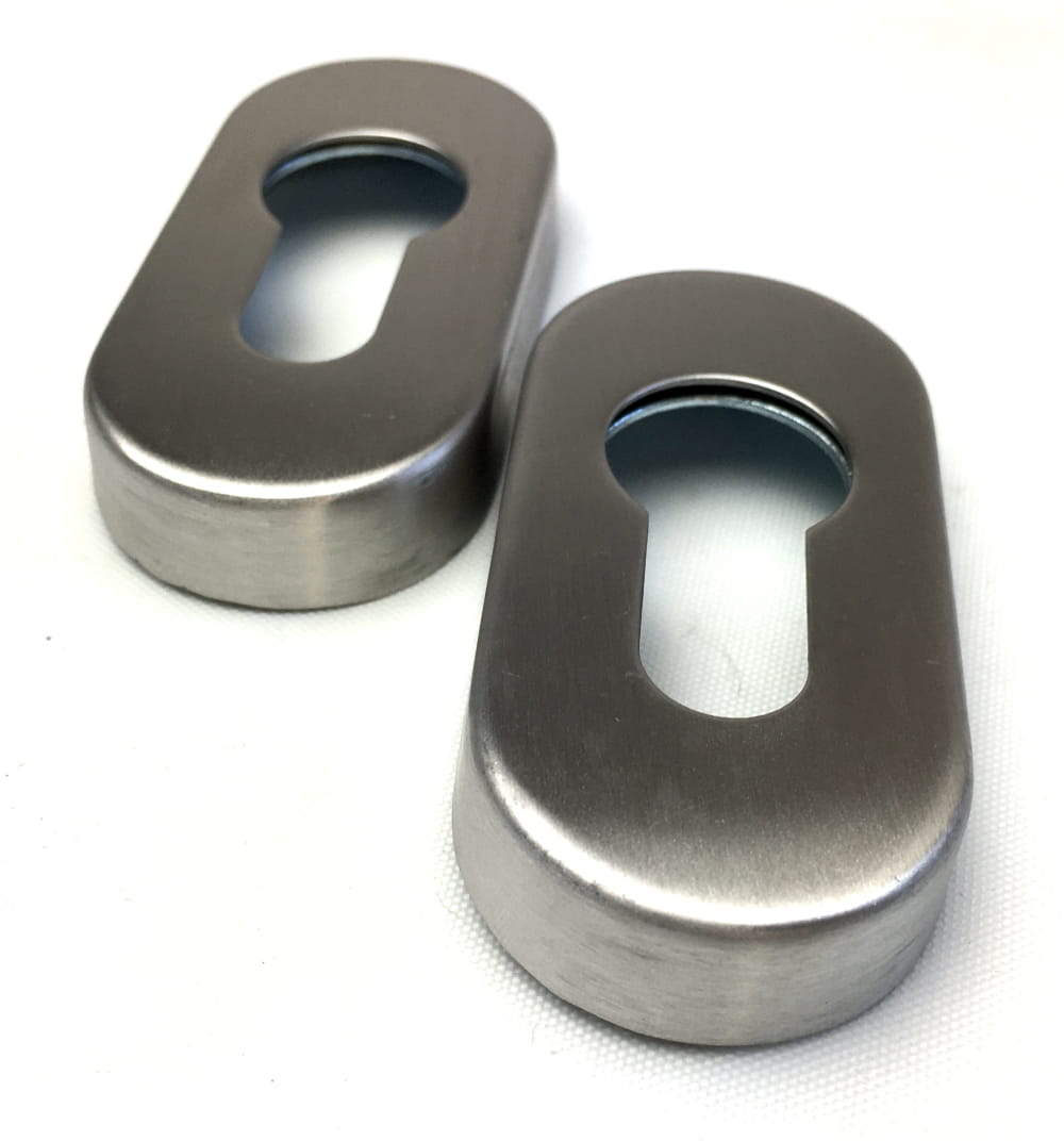Dodatkowe rozetki owalne na wkładkę. Okucia drzwiowe wykonane ze stali nierdzewnej oferują wysoką odporność na korozję, oraz zużycie mechaniczne. Dopuszczalne do drzwi przeciwpożarowych.