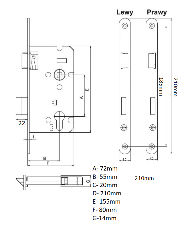 CAM Zamek 72/55 czoło 210mm / Abloy 4262