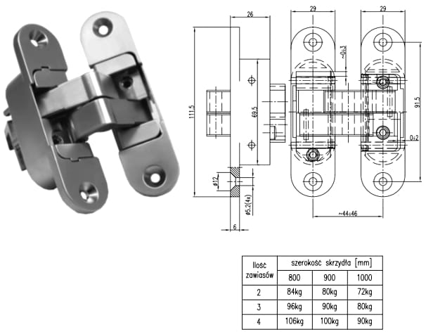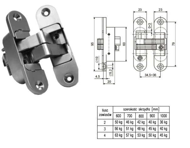 – Zawias przeznaczonym dla stolarki drzwiowej wewnętrznej, ale może być również