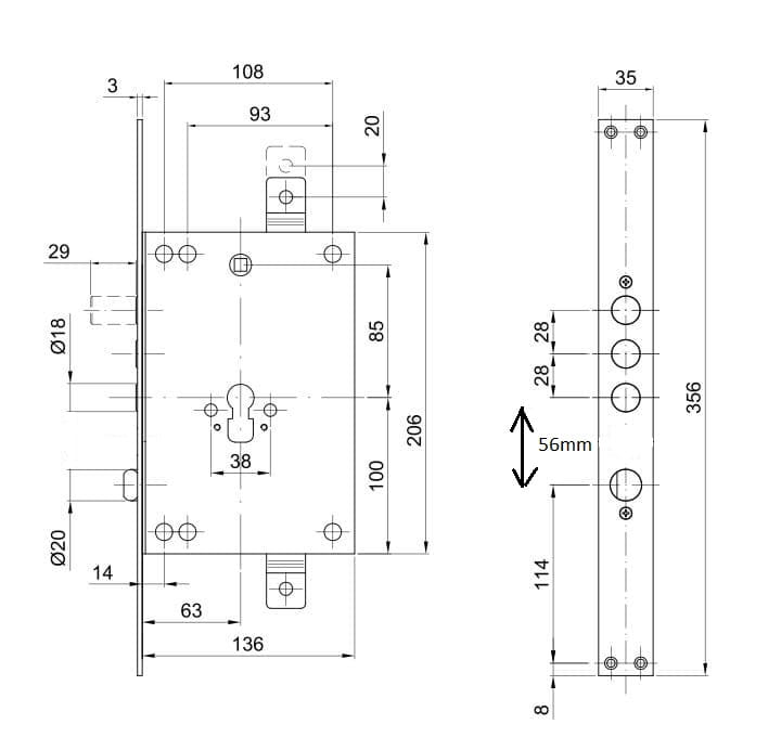 – Rozstaw rygli 28mm