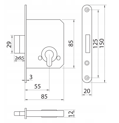 Zamek wpuszczany przeznaczony do drzwi zewnętrznych i wewnętrznych