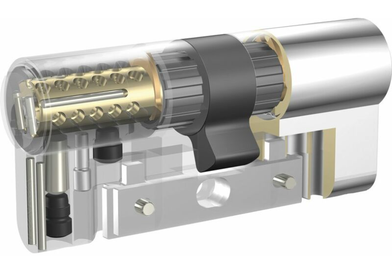- Odporność na bumping, kopiowanie, łamanie, rozwiercanie, ukręcanie, wyrwanie i wytrychowanie dzięki unikatowemu systemowi krzyżykowych pinów CROSS (zastawki ułożone w 4 prostopadłych rzędach) opatentowanemu przez firmę Dormakaba i najwyższej jakości materiałów.