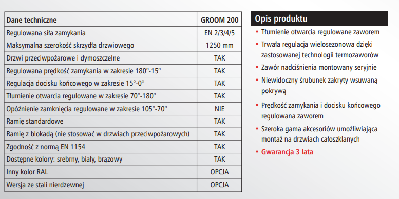 DORMAKABA Samozamykacz GROOM GR 200 z ramieniem