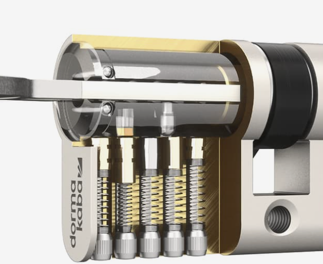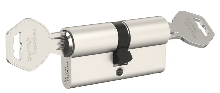 Wkładka bębenkowa DORMAKABA AP1500 to podstawowa wkładka systemowa tego producenta, posiadająca 5 kołkową konstrukcję bębenka oraz zabezpieczenie przeciwko przewierceniu. Na uwagę zasługuje fakt, że jej klucze wykonane są ze stopu mosiądzu „new silver” co gwarantuje brak wycierania się klucza podczas użytkowania.