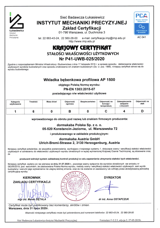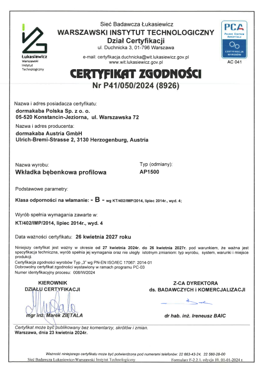 DORMAKABA Wkładka antywłamaniowa AP1500