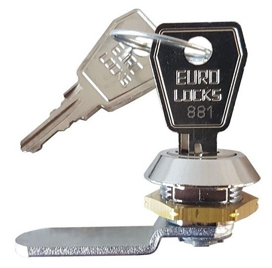 Zamki meblowe Euro-Locks zapewniają uniwersalność i szybkość w montażu. Model ten sprawdzi się w różnego rodzaju meblach – zastosowania medycznego, biurowego, szafkach pracowniczych. Wykonany z świetnych tworzyw, które są odporne na mechaniczne uszkodzenia – niklowanej powłoki i mosiężnej nakrętki chroniącej przed korozją. Krzywka w zamku pozwala na zmianę stronności. Ustawienie rygla można dostosować obracając go nawet o 180 stopni, gdzie pojedynczy skok wynosi 90 stopni względem zamka.W komplecie z zamkiem – 2 klucze indywidualne.