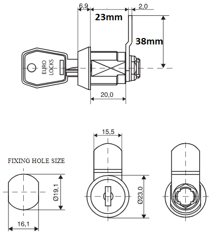 Zamki meblowe Euro-Locks zapewniają uniwersalność i szybkość w montażu. Model ten sprawdzi się w różnego rodzaju meblach – zastosowania medycznego, biurowego, szafkach pracowniczych. Wykonany z świetnych tworzyw, które są odporne na mechaniczne uszkodzenia – niklowanej powłoki i mosiężnej nakrętki chroniącej przed korozją. Krzywka w zamku pozwala na zmianę stronności. Ustawienie rygla można dostosować obracając go nawet o 180 stopni, gdzie pojedynczy skok wynosi 90 stopni względem zamka.W komplecie z zamkiem 2 klucze
