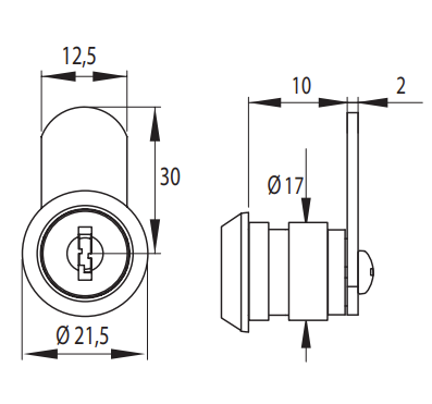 ZAMEK KRZYWKOWY EURO-LOCKS F143, PROSTY, DŁUGOŚĆ GWINTU 9,5mm