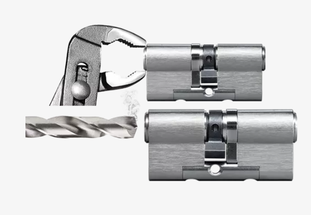 Seryjnym zabezpieczeniem przed rozwierceniem i nawierceniem we wkładkach 4KS są elementy ze stali hartowanej. Specjalnie utwardzane płytki stawiają opór narzędziom do wyciągania rotora.