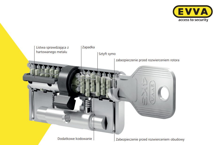 Klucze dorabiane są przez firmę EVVA lub przez partnerów EVVA tylko osobom uprawnionym, posiadającym kartę bezpieczeństwa. -