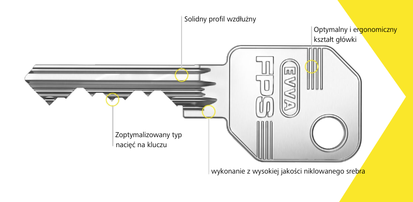 EVVA posiada wyłączne prawo do produkcji kluczy FPS Profil kluczy systemu zamknięć FPS jest objęty ochroną patentową. Dzięki temu firma EVVA może podejmować kroki prawne przeciwko rzemieślniczemu dorabianiu kluczy przez osoby nieupoważnione. -