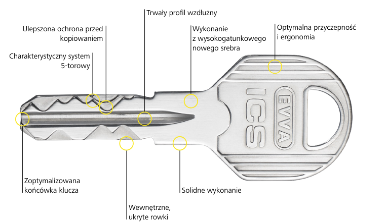Klucze dorabiane są przez firmę EVVA lub przez partnerów EVVA tylko osobom uprawnionym, posiadającym kartę bezpieczeństwa. -