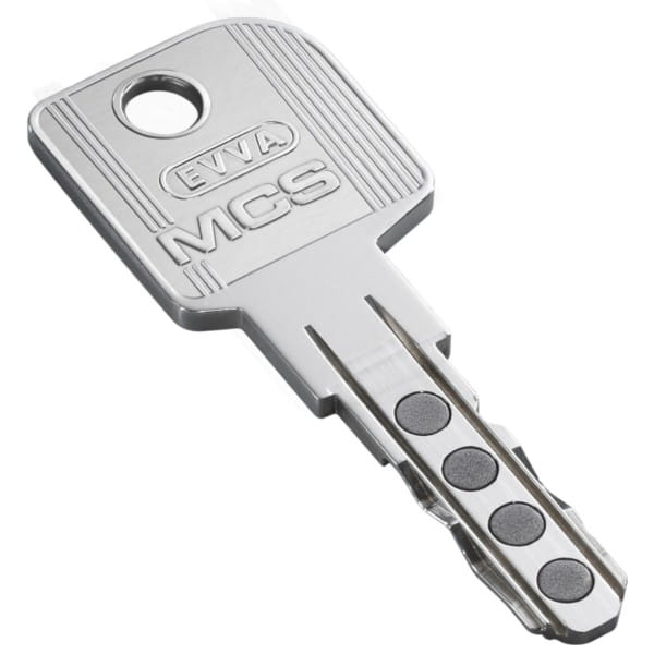 EVVA posiada wyłączne prawo do produkcji kluczy MCS Profil kluczy systemu zamknięć MCS jest objęty ochroną patentową. Dzięki temu firma EVVA może podejmować kroki prawne przeciwko rzemieślniczemu dorabianiu kluczy przez osoby nieupoważnione. -