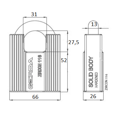 GERDA Kłódka antywłamaniowa ZIRCON 116 kl. 6