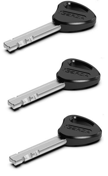 3 klucze w komplecie – dorabianie tylko w autoryzowanych punktach GERDA na podstawie dołączonej karty kodowej