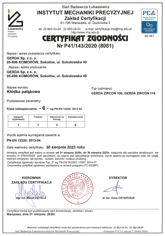 aktualny certyfikat IMP nr P41/217/2011(4352)Z2 do pobrania w pliku PDF