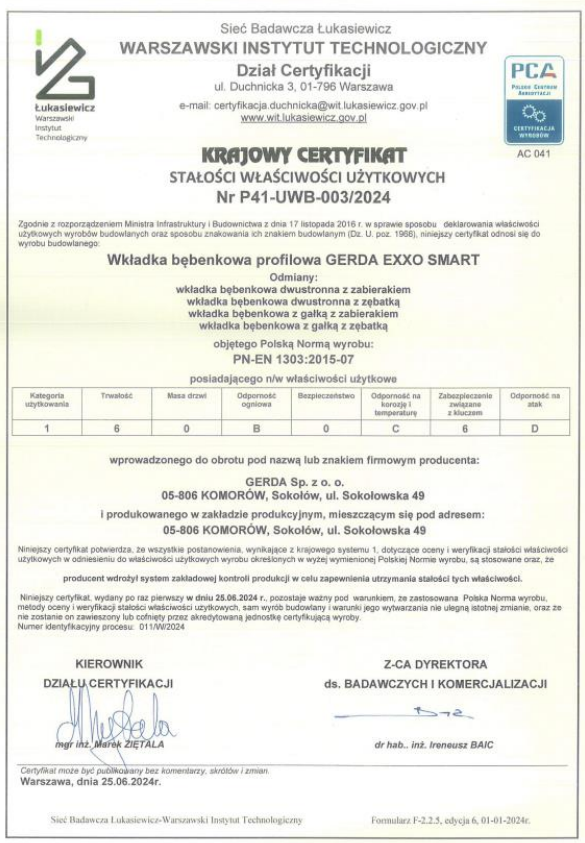 NAJWYŻSZA KLASA BEZPIECZEŃSTWA 6.D ZGODNIE Z NORMĄ EN 1303:2015