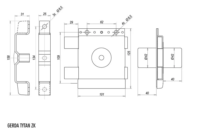 Zamek Gerda TYTAN ZK dwubębenkowy, znajduje zastosowanie tam, gdzie wymagana jest kontrola dostępu zapewniająca możliwość obustronnego otwarcia drzwi przejściowych pomiędzy pomieszczeniami (kraty, łączniki pomieszczeń, narzędziownie, magazyny itp).