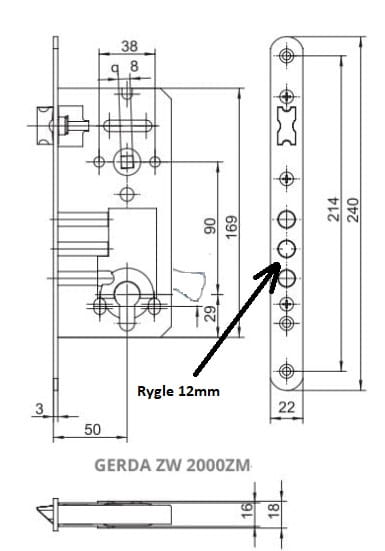 Gerda zamek wpuszczany rozporowy główny do drzwi zewnętrznych ZW2000 ZM