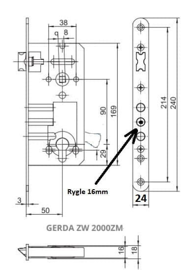 Gerda zamek wpuszczany rozporowy główny do drzwi zewnętrznych ZW2000 ZM PREMIUM