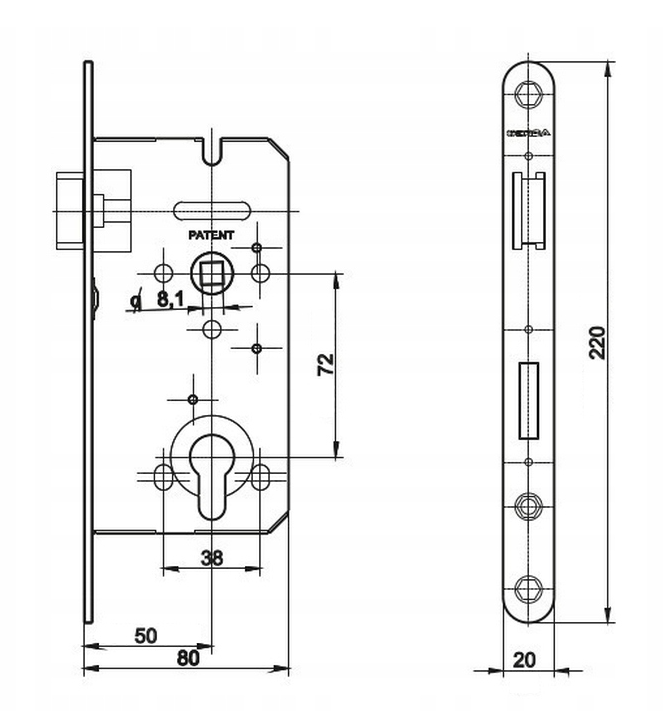 GERDA ZW 100 72/50 zamek uniwersalny na wkładkę, ocynk złoty, pudełko