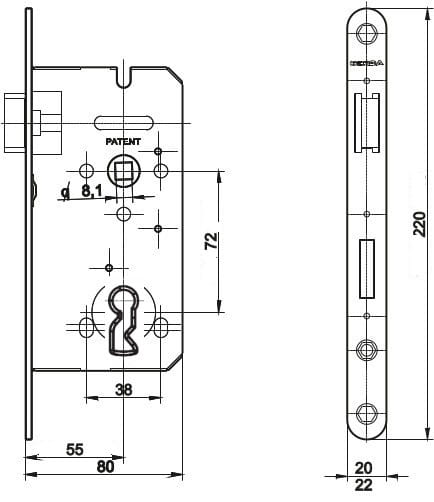 GERDA ZW 100 72/55 zamek uniwersalny na klucz, ocynk srebrny, pudełko