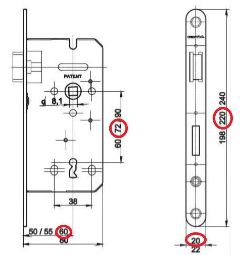 GERDA ZW 100 72/60 zamek uniwersalny na klucz, ocynk srebrny, pudełko