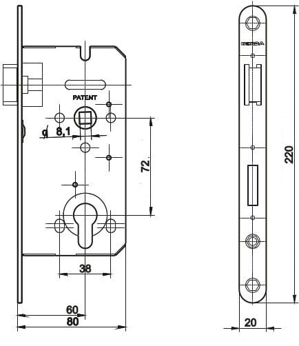 GERDA ZW 100 72/60 zamek uniwersalny na wkładkę, ocynk srebrny, pudełko