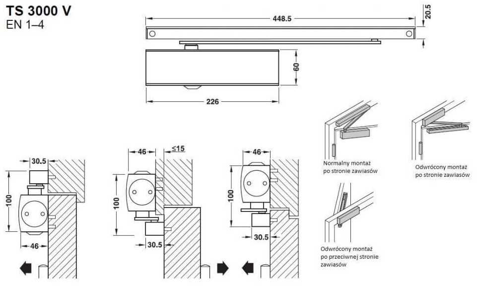 | Rodzaj montażu | Montaż na skrzydle po stronie zawiasowej |