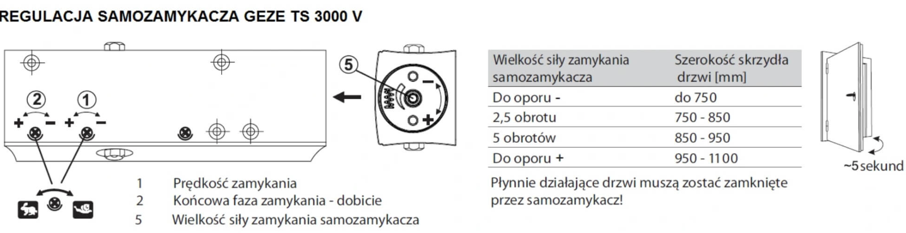 | Regulowana siła zamykania | Tak, bezstopniowo |