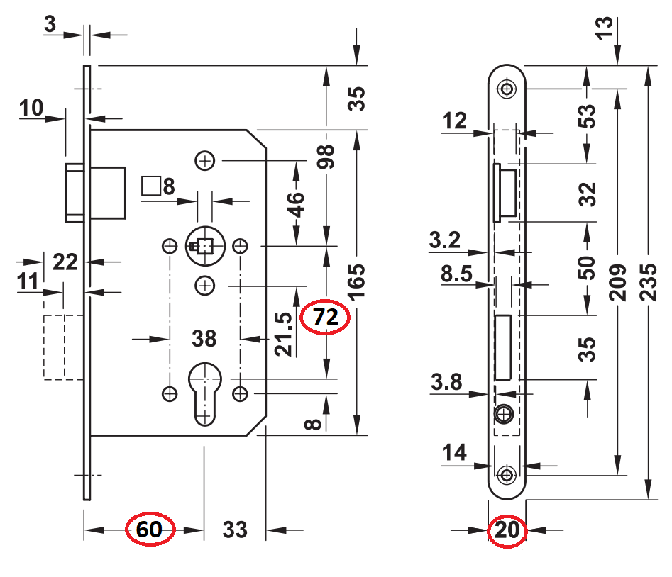 HAFELE Zamek wpuszczany p.poż 72/60/20 BMH 300