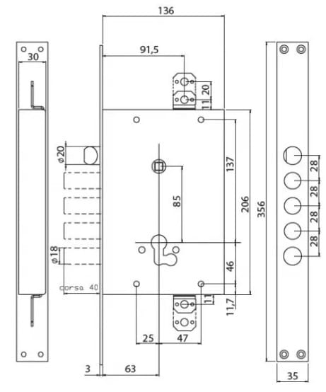 Zamek wpuszczany FIAM 678 (model FM-678-0028-0GF0 ) na wkładkę