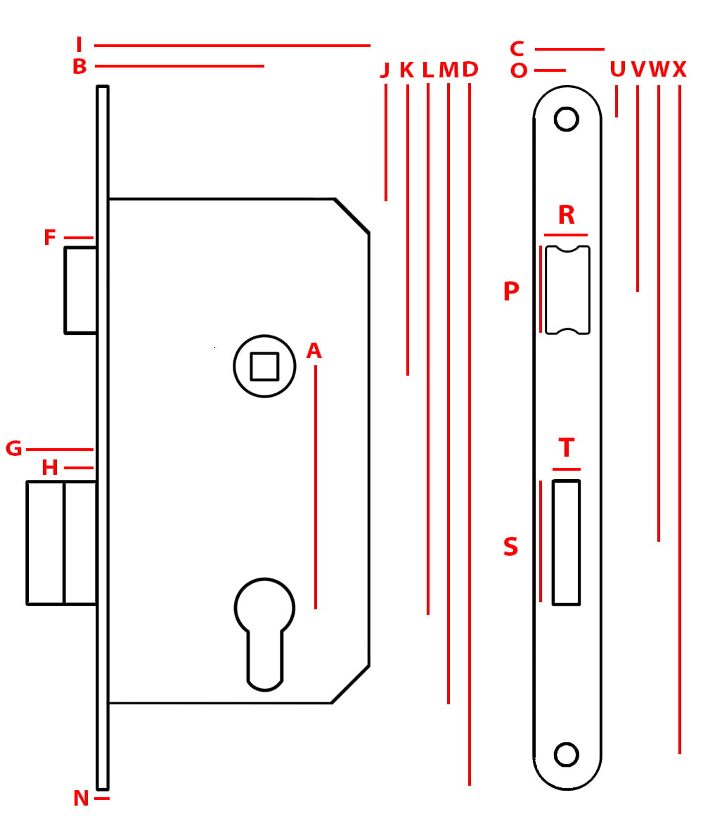 Zamek drzwiowy ekonomik 72/55 mm wkładka – czoło 235/20 mm ( Z347 )