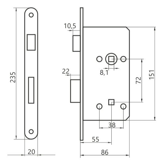 ZAMEK WPUSZCZANY 72/55 WC