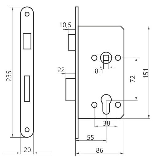 Zamek wpuszczany na wkładkę bębenkową