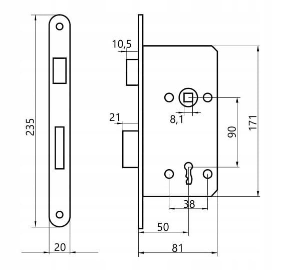 Zamek wpuszczany na klucz zwykły.