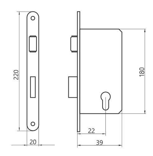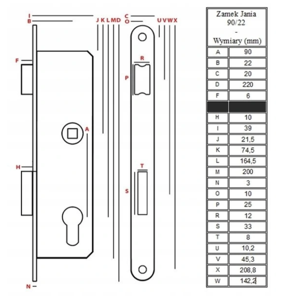 Zamek wpuszczany przeznaczony do stolarki aluminiowej, furtek, drzwi zew itp