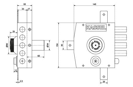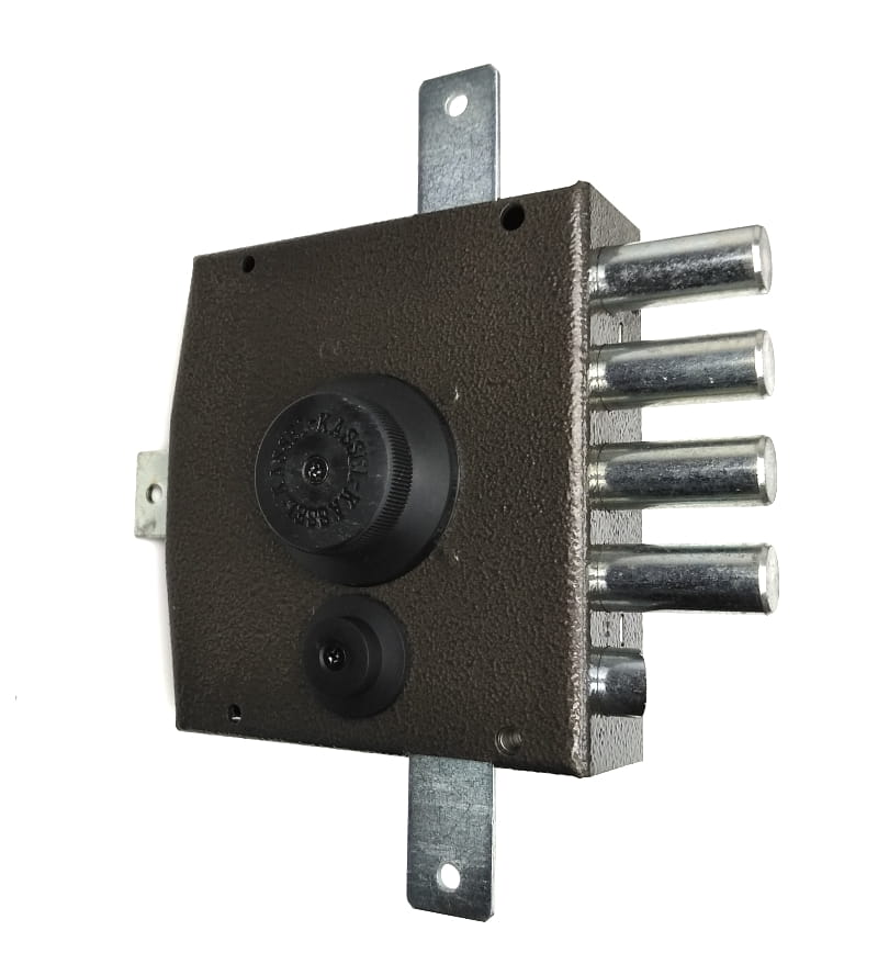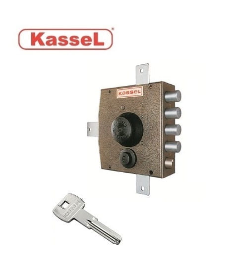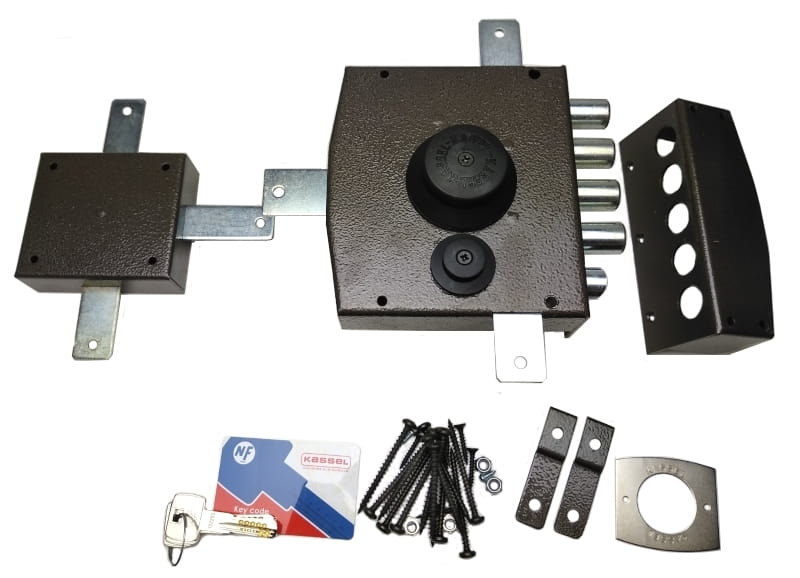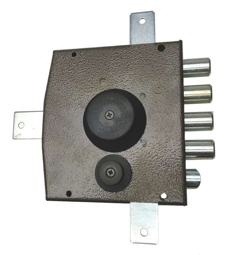 Zamek nawierzchniowy rozporowy do drzwi wejściowych ze zwrotnicą i dodatkowym ryglem zatrzaskowym włoskiej firmy KASSEL