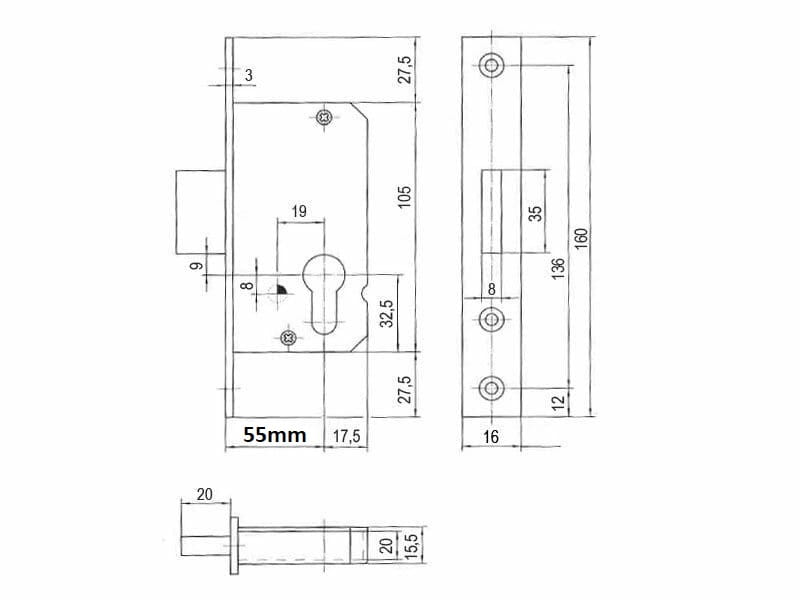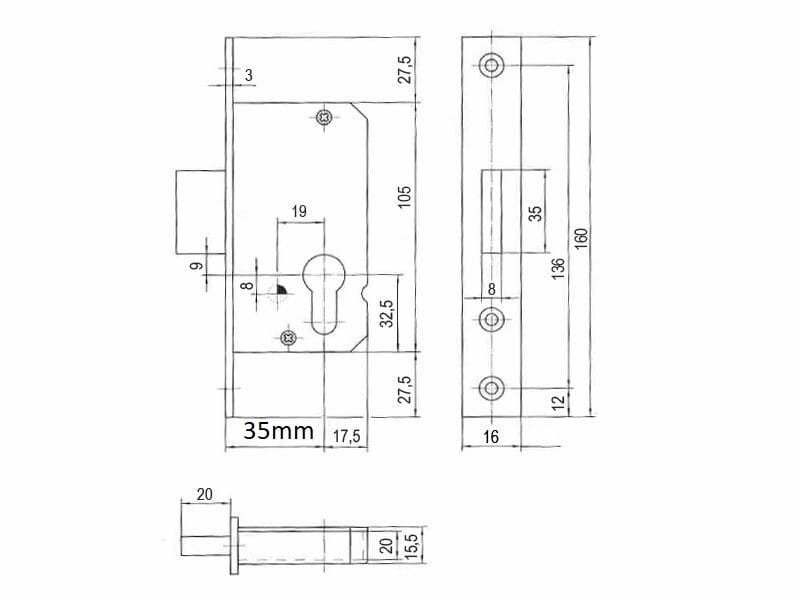 - Wysokość kasety zamka 105 mm