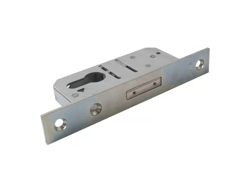 Zamek dodatkowy do drzwi zewnętrznych KFV 50 ryglowy, wpuszczany. Uniwersalny do drzwi prawych i lewych otwieranych wkładką bębenkową PZ. Wykonany ze stali ocynkowanej.