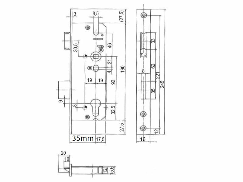 - Wysokość kasety zamka 190 mm