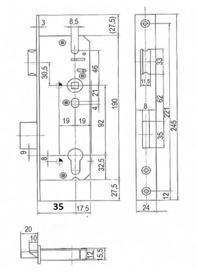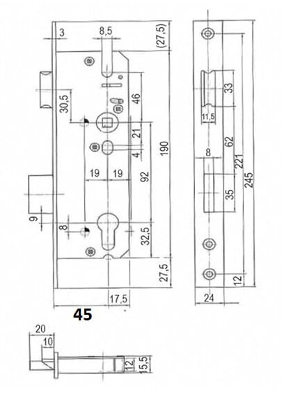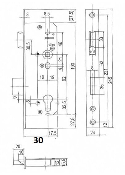 - Wysokość kasety zamka 190 mm